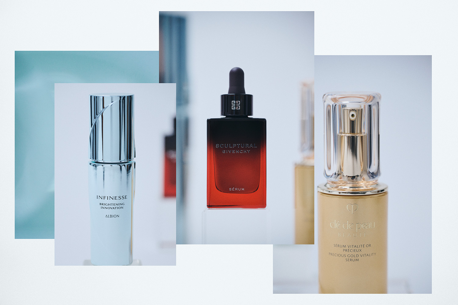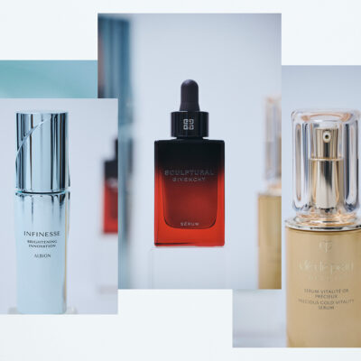 ツヤによる明るさと同じくらい美肌印象に欠かせないのが、“ハリ”。潤ってふっくら、健やかな肌にはポジティブなオーラが宿ります。乾燥や季節の変わり目などの環境ダメージから肌を守るべくして生まれたのが、クレ・ド・ポー ボーテのセラムヴィタリテオープレシュー。昨今、脚光を浴びているレチノールを含む独自複合成分“24Kゴールド・レチノール GLコンプレックス”*1を配合し、なめらかで美しい肌へと導いてくれると話題です。真紅のボトルの美しさが目を引くのが、ジバンシイのスカルプチュラル セラム。ハリ不足を引き起こす、コラーゲンの劣化に着目した配合で、なめらかで凛とした美しい肌を目指します。アルビオン アンフィネスのブライトニング イノベーションは、生命感に満ちたハリも透明感*2も両方欲張れるマルチタスクな美容液。シワ改善・美白*2有効成分のナイアシンアミドを配合。