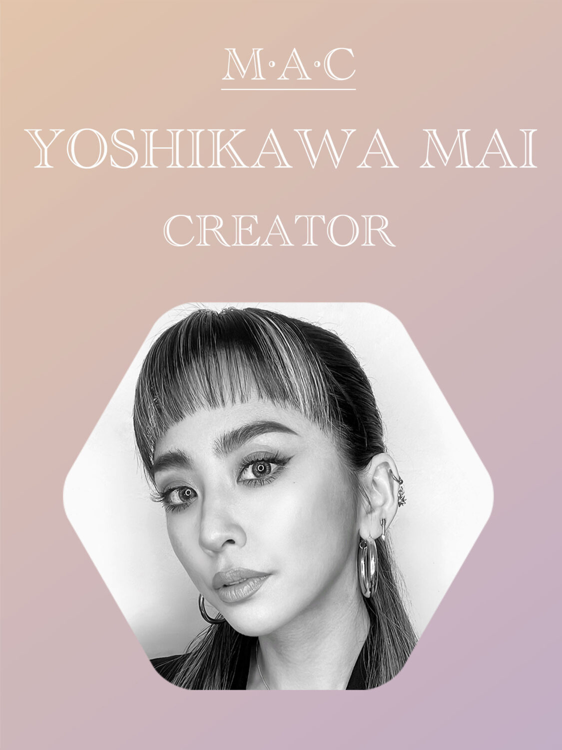 「M・A・Cならではの、モードでオシャレな春メイク。主役は。M・A・Cがヌードを新解釈したことで生まれた血色*ベージュのヌーディリップ。ガラスみたいな光*を秘めたサテン発色だから、シャドウで目元を盛っても重たくならず軽やか。目元はラインや強い色で強くするのではなく、カラーレスな色みを繊細に重ねて彫りを深め、ラメでアクセントを加えてみました。チークは涙のしずくみたいに縦長に入れて大人っぽい血色感*に仕上げるのがおすすめです」(好川さん)