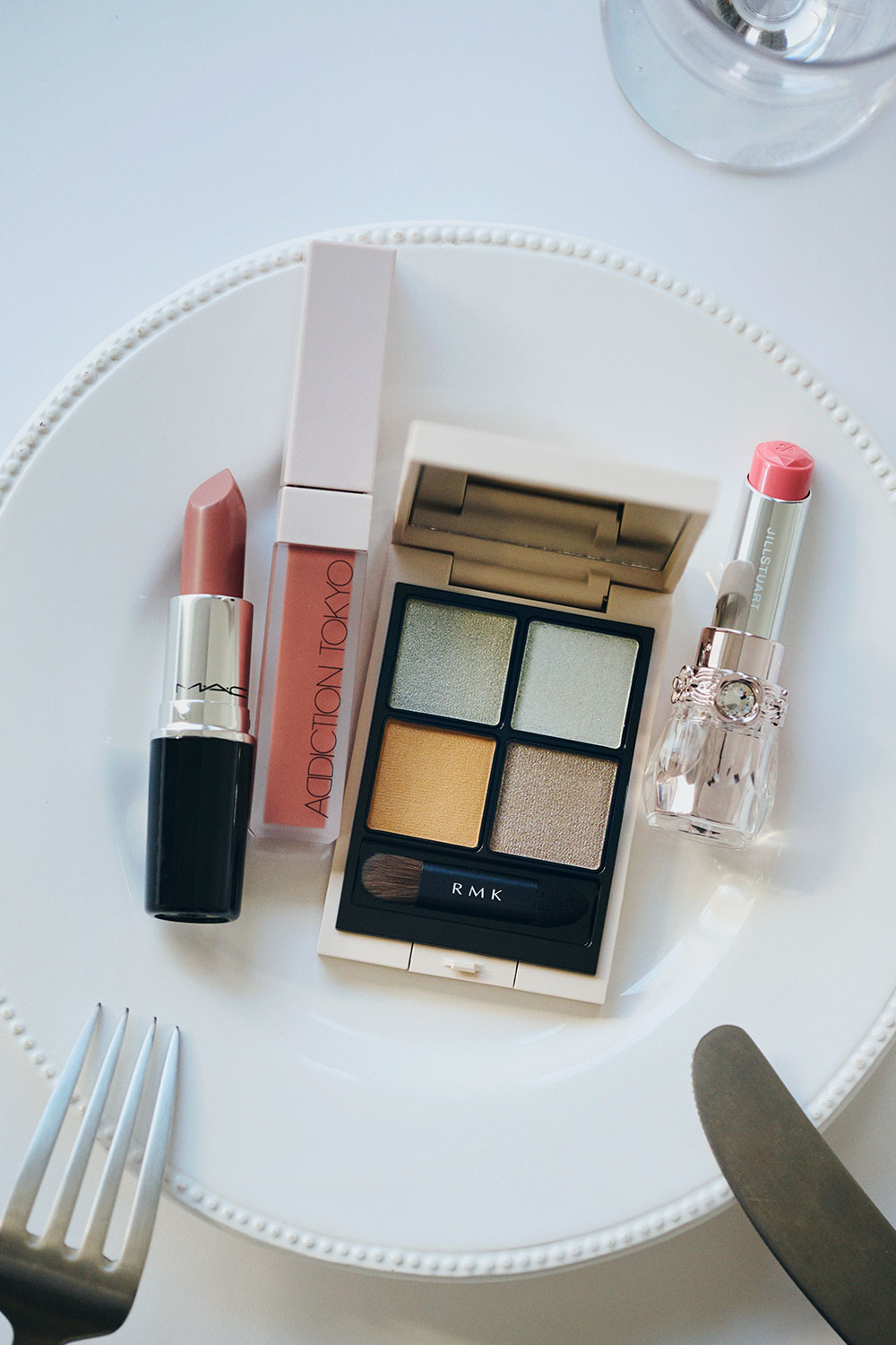 「リキッドチークは一見、難しそうに見えますが、実はとっても簡単にリアルな血色感*や立体感*を引き出せるアイテム。特にアディクションの新作はベタッとつかない絶妙な透け発色なので、ラフにのせても自然に仕上がります。今回はそのリキッドチークの中でもフワッと発色するタイプを主役にして、目元や唇もウォーミィでミュートなベージュトーンで統一。パキッとした色を使わずに、洒落感ある血色*を仕込むことで大人に似合うフレッシュさを引き出しています。目元はラインレスにしつつ、ブラックのマスカラで引き締めて、抜け感と目ヂカラ*を両立しました」