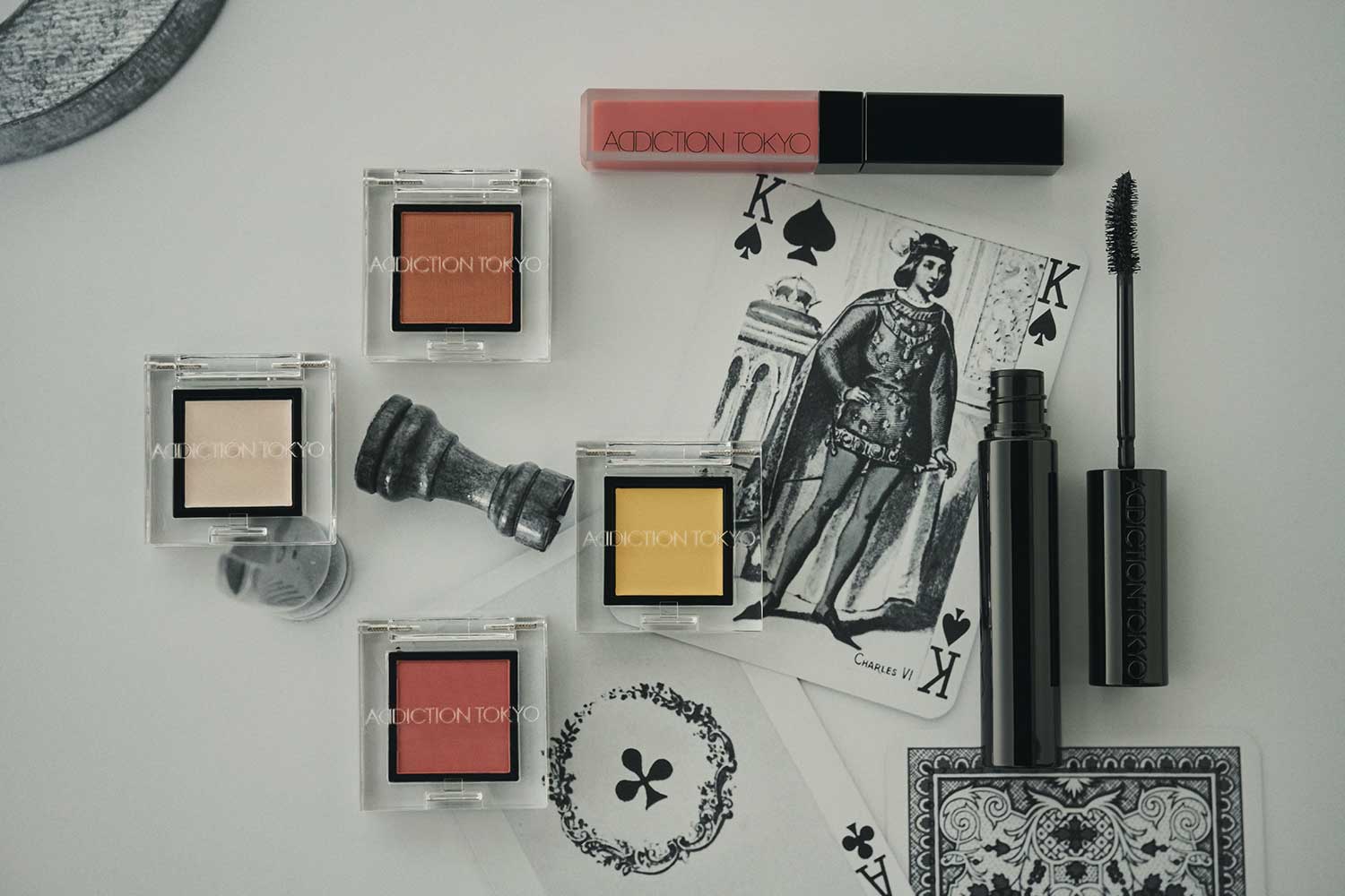 “WORDS OF LOVE”という今回のコレクションテーマにぴったりなアイテムたちがお目見え。ボリュームと美しさを同時に叶えるマスカラや、色やきらめきで気持ちを饒舌に表現する単色アイカラー、そしてくっきりとした色とマットな質感でドラマティックなインパクトを唇に宿すリキッドリップ、光が当たる角度で表情を変えるフロスティなネイルカラー。まなざしを、唇を、指先を、アディクションならではの甘いだけじゃない春の色たちで飾って。