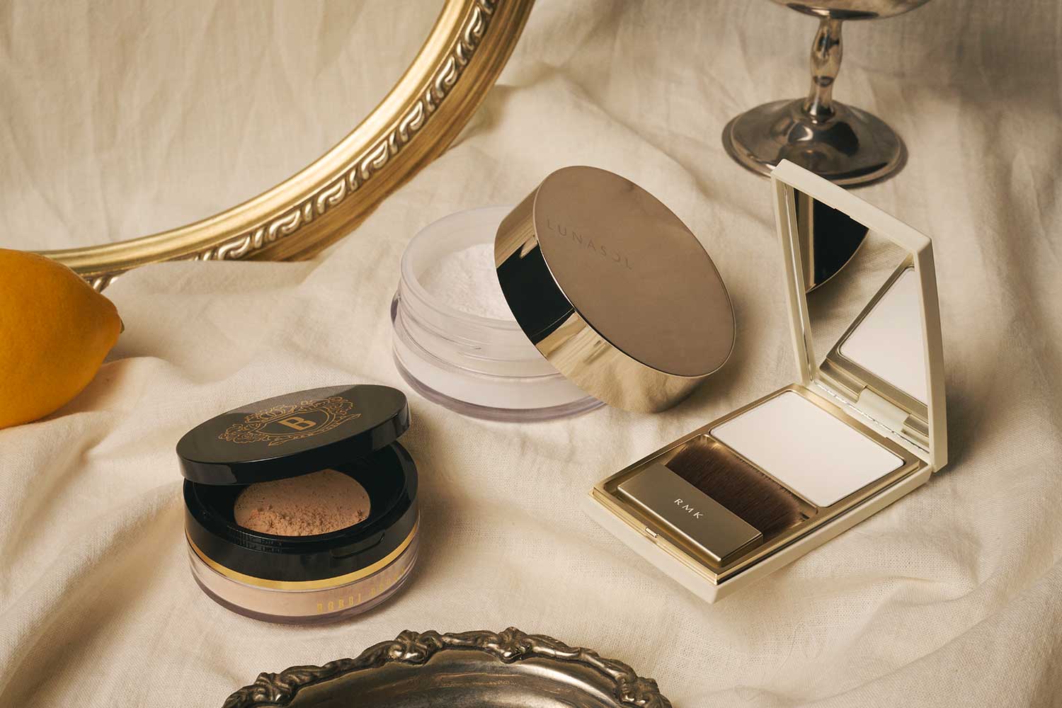 メイクの仕上げにひとはけするだけで、メイクくずれを防ぎながら肌の印象をコントロール。そんなベースメイクの相棒、フェイスパウダーの名品が今季は豊作。RMKのシルクフィット セッティングパウダーは、色を感じさせずに透明感をプラスすることにこだわったアイテム。その名の通り、さらりとシルクのような手触りの肌に仕上がります。ボビイ ブラウンのリュクスラディアンスルースパウダーは粉っぽさを感じさせないクリーミィなテクスチャー。過剰な皮脂によるメイクくずれを防ぎつつ、しっとりとした肌に仕上げてくれます。ルナソルのスムースクリアパウダーは、澄んだ光のヴェールをまとったような肌に仕上げる純白のパウダー。肌にシームレスに溶け込むので、ツヤ肌仕上げのファンデとも相性抜群。