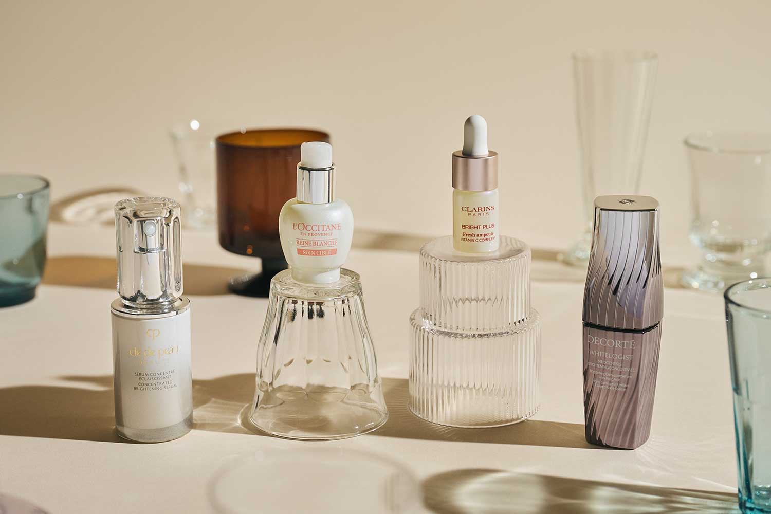 ブライトニング*1美容液の進化が止まらない!クレ・ド・ポー ボーテの4MSK*2やm-トラネキサム酸*3、コスメデコルテのコウジ酸*4をはじめとした、各ブランドのスター成分を配合した新作がザクザク。クレ・ド・ポー ボーテのセラムコンサントレエクレルシサンnは、4MSK*2やm-トラネキサム酸*3によるシミの予防だけでなく、乾燥によるくすんだ肌印象にも着目。保湿成分を強化することで、すこやかでなめらかな肌を目指せる。ナイトケアの充実を目指すなら、ロクシタンのレーヌブランシュ ターゲティッドナイトコンセントレートを。密着力の高いジェルテクスチャーで、攻めたいポイントをピンポイントで集中的にケアできる。大事な予定の1週間前から使い始めたいのが、クラランスの7日間集中ケア、ブライトプラス フレッシュ インテンシブエッセンス。ダブルのビタミンC*5を配合し、乾燥によってくすんだ肌に潤いを与え明るい印象の肌へ。独自の美白*1メカニズムでシミなどの“点”だけでなく、肌全体の“面”でもアプローチを目指すのが、コスメデコルテのホワイトロジスト ネオジェネシス ブライトニング コンセントレイト。ブランドのアイコン的アイテム、ホワイトロジストをさらに進化させた処方に注目を!