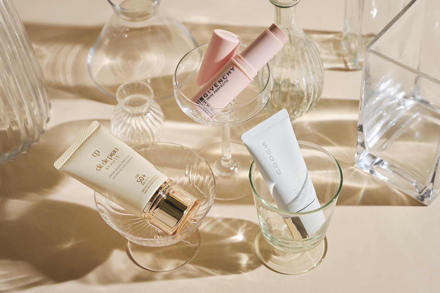 優れたUVケアアイテムも今シーズンは大豊作。紫外線から肌をしっかり守るのはもちろん、肌に嬉しい効果を兼ね備えたアイテムに注目が集まっています。クレ・ド・ポー ボーテのクレームUV nは、高い紫外線カット効果に加え、肌にとって良い光を選択して取り込む技術を搭載。保湿クリームのようなテクスチャーで保湿力も上々。日中の塗り直しにおすすめなのが、ジバンシイのスキン PFCT UV スティック。スキンケア成分としてワイルド ピンク ペッパー*1とビタミンC誘導体*2を配合。さらにしっとりとしたテクスチャーだから、日中乾燥が気になる部分にもおすすめです。ツヤのベールで肌を明るく整えるのがSUQQUのプロテクティング デイ クリーム。なめらかなベールのように肌に伸び広がって、光を反射するツヤ肌に。たっぷりの美容保湿成分に加え、肌表面に花粉や大気中の汚れが付着するのを防ぐ設計も魅力。