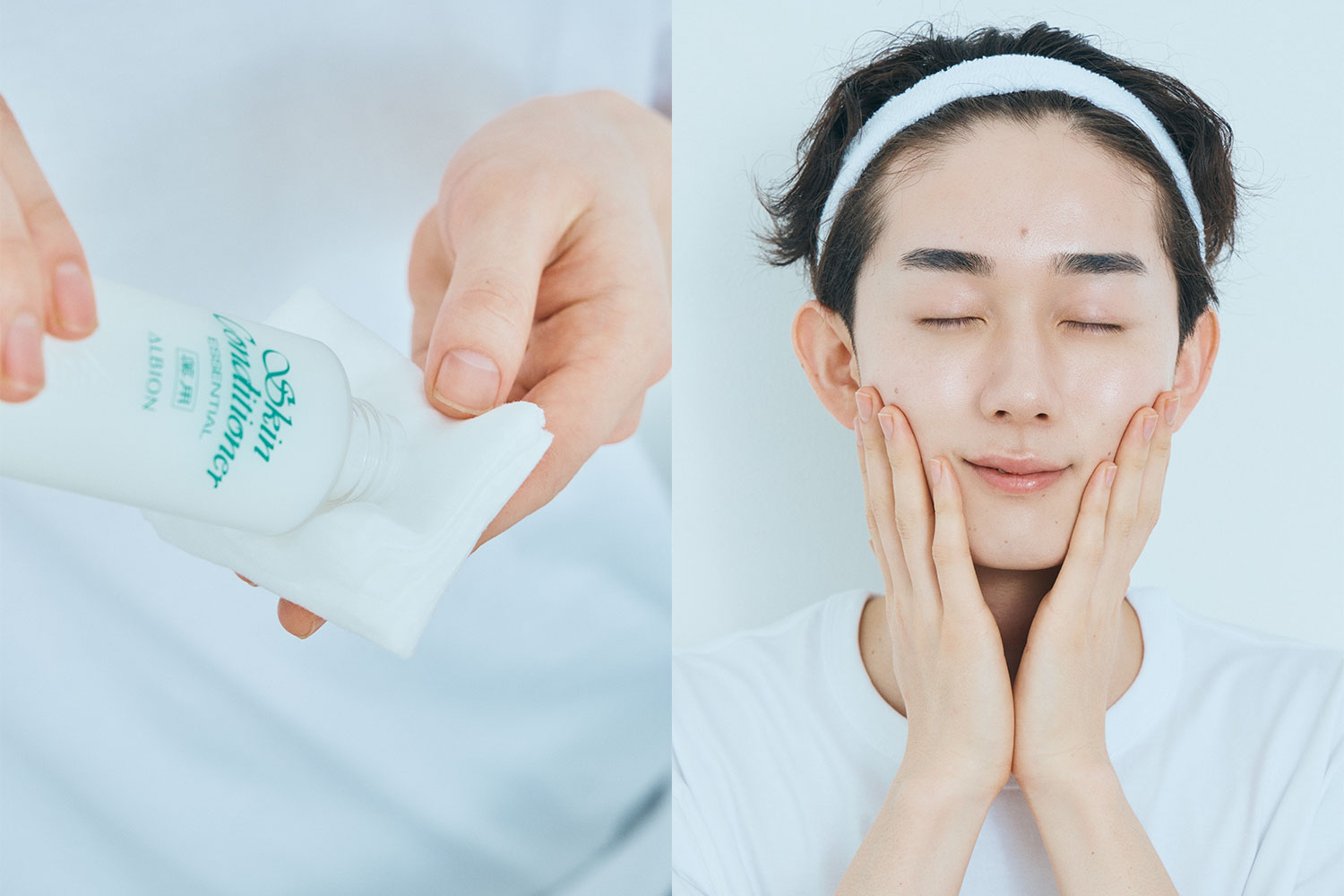 日焼けや空調などの影響もあり、男性の肌も実は乾きやすいもの。さらに乾燥することによって、頬や額などの皮脂が増えてしまう可能性も。健やかな肌でいるために大切なのが、朝晩の保湿ケア。余分な皮脂や汚れを洗顔料で洗い落としたら、化粧水でしっかり水分チャージを。さっぱりとしたテクスチャーを選べば、蒸し暑い夏でもベタつかず心地よく過ごせます。