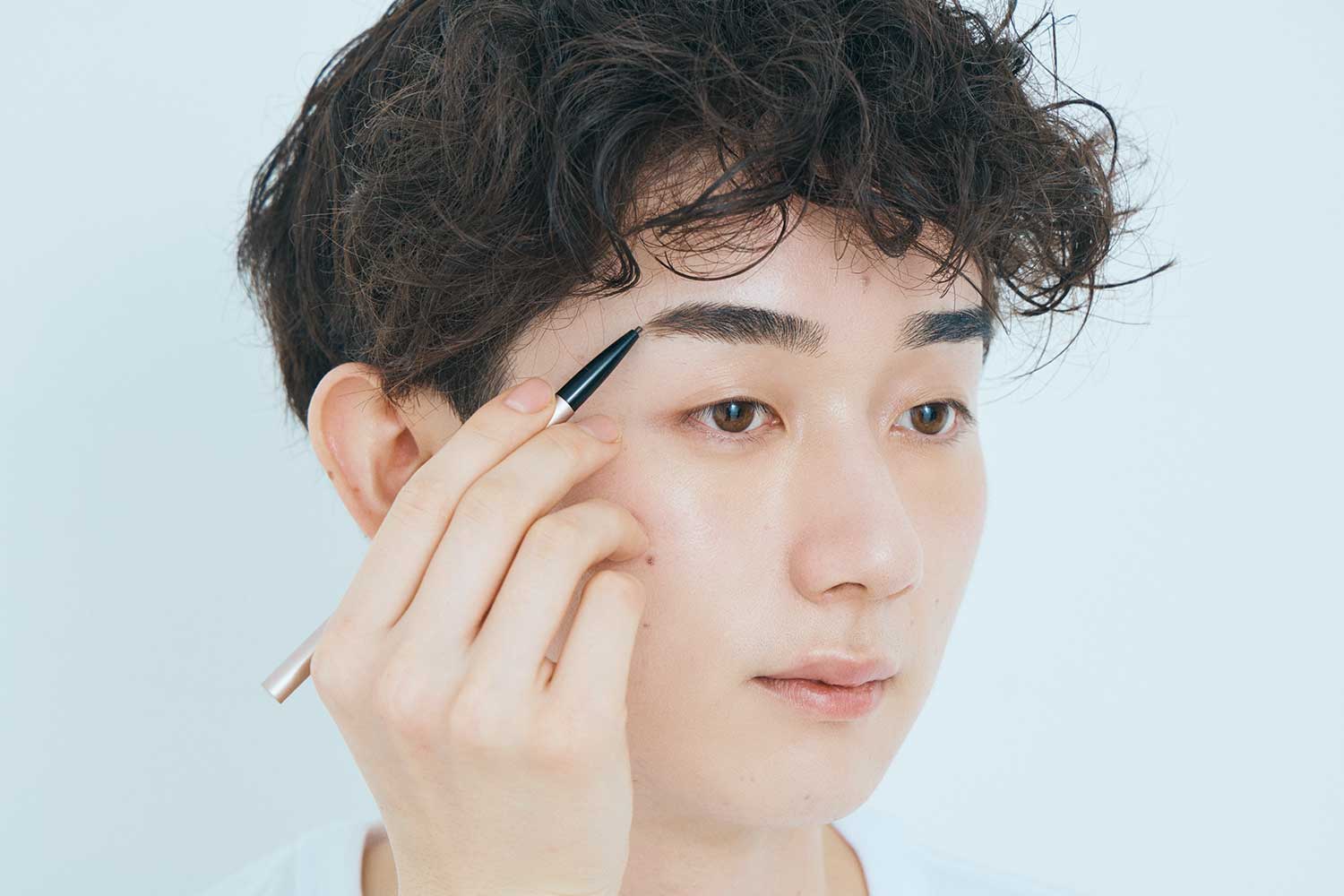 クマや髭剃り跡をナチュラルにカバー*するコンシーラー、開きがちな男性の肌の毛穴や凸凹をなめらかに整える*ポア下地、テクニックレスに塗れる薄膜ファンデ、眉の形を整える*ペンシルと乾燥から唇を守るリップ。あくまで好感度を上げるためのメイクならば、この5カテゴリを押さえておけばOK。男性の場合、ややマットに仕上げた方が自然なので、下地やファンデ、コンシーラーはツヤツヤすぎない仕上がりを選ぶのが正解です。