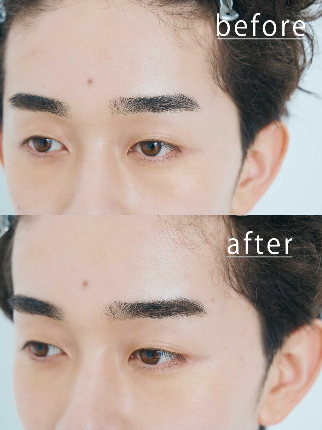 全体に描き足してしまうと、濃くなりすぎるし、眉がのっぺり見えて立体感が失われてしまう。毛の薄い部分のみにペンシルで毛を植毛するように描き足す*のが正解。カラーは眉色と同じか少しだけ淡いものを。また、眉頭を描き足す*とメイク感が出てしまうので触らないこと。