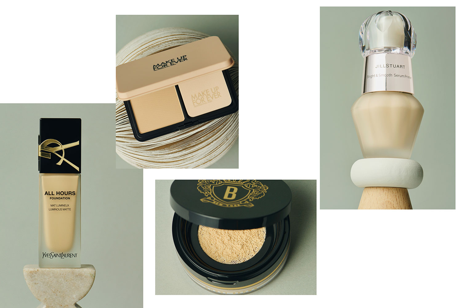 シミや毛穴といった肌のアラをしっかり隠せる*1カバー力は欲しいけど、厚塗り感は出したくない。さらに、湿気や皮脂、汗に負けないくずれにくさもマスト。そんなワガママな願いをスマートに叶えるアイテムが豊作。美容系インフルエンサーからも高い支持を得ているのが、イヴ・サンローランのオールアワーズ リキッド。ピタッと薄膜のようにフィットして、美しさを長時間キープできる実力派リキッドファンデーションです。高いカバー力と軽やかさを併せ持つメイクアップフォーエバーのパウダーファンデ、HDスキン マットベルベット コンパクトもおすすめ。しっとり感も続くので、実は空調などで乾燥しやすいこの時期の肌に寄り添ってくれます。メイクの仕上げに纏うことで、すべさら*1な肌へと整えるルースパウダーのイチオシは、ボビイ ブラウンのリュクス ラディアンス ルース パウダー。全体にまとったあと、眉や下まぶた、小鼻横などに重ねるとよりくずれにくく。ジルスチュアートからはマットタイプが新登場。皮脂や汗に強い成分*2を配合し、メイクがくずれにくいのが魅力です。今回紹介した4品のようなくずれに強いアイテムを使う前にスキンケアでしっかり保湿を行うことで、さらにメイクのキープ力が高まるのでぜひお試しを!