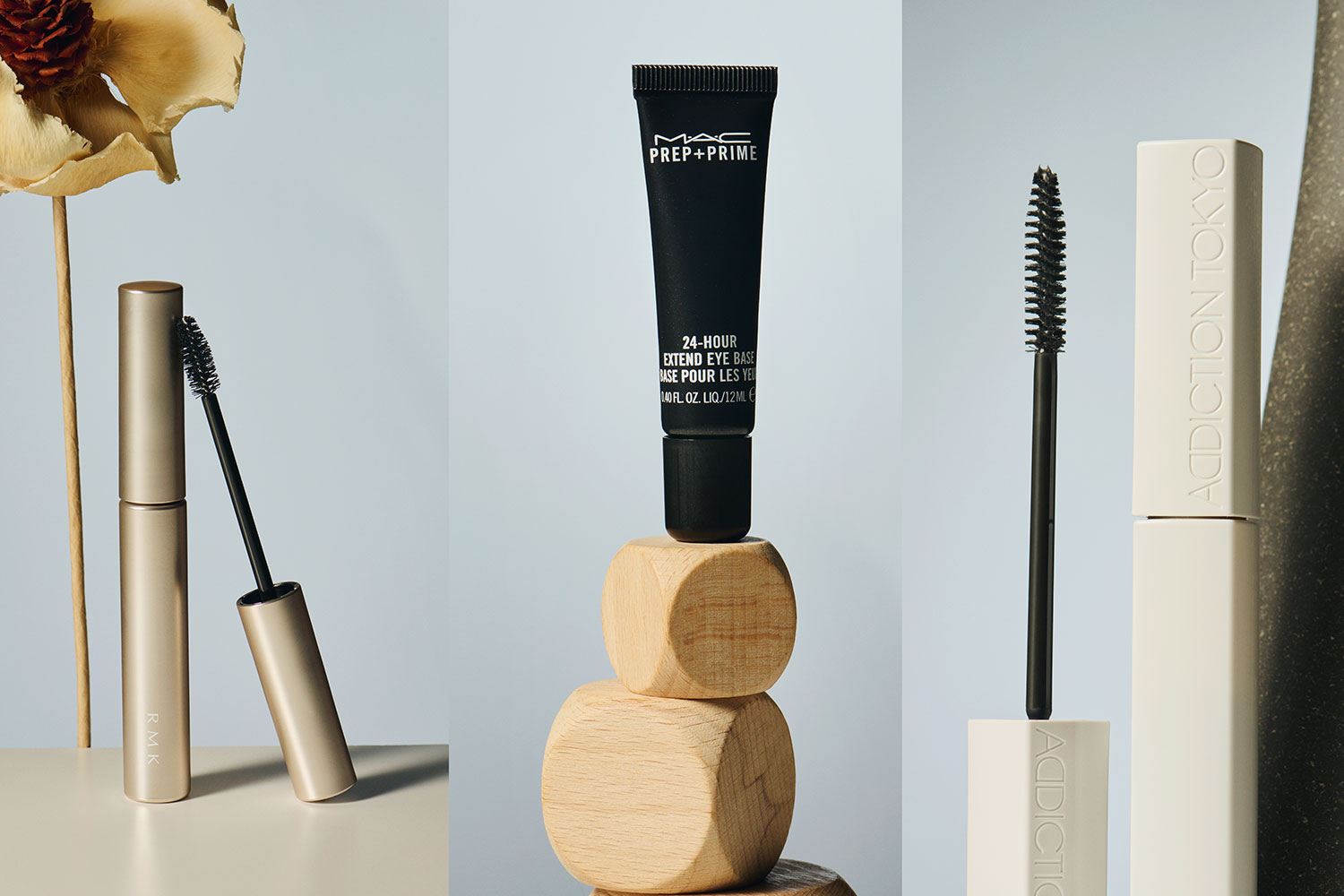 朝、せっかく完璧にアイメイクを仕上げても、湿気や皮脂でくずれてしまうことが。いったんくずれてしまうとリカバリーが大変なので、メイク時の“仕込み”で予防しましょう。今っぽい眉に欠かせない毛流れですが、髪の毛同様湿気や皮脂で崩れがち。RMKのクリアアイブロウジェルなら、ブラシでサッととかすようにのせるだけで毛流れのホールドが簡単に叶います。眉をそこまで描き足さなくても、眉の立体感や輪郭がしっかり際立つのも魅力です。二重や目尻にヨレたシャドウが溜まるのを回避しつつ、つけたての色をロングキープしてくれるのはM・A・Cのプレッププライム 24hoursアワーエクステンドアイベース。透明かつサラサラのテクスチャーだから、どんな色、質感のシャドウにも使えるのも嬉しい。アディクションのマスカラ下地、ザ マスカラプライマー カールフィクサーは、その名の通りカールキープ力に優れたアイテム。透け感あるブラックだから、目元をさりげなく際立てたいときにはこれ1本で仕上げても。