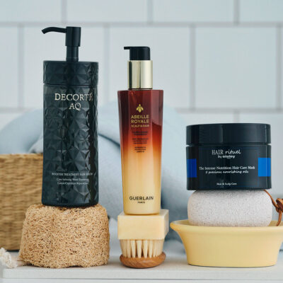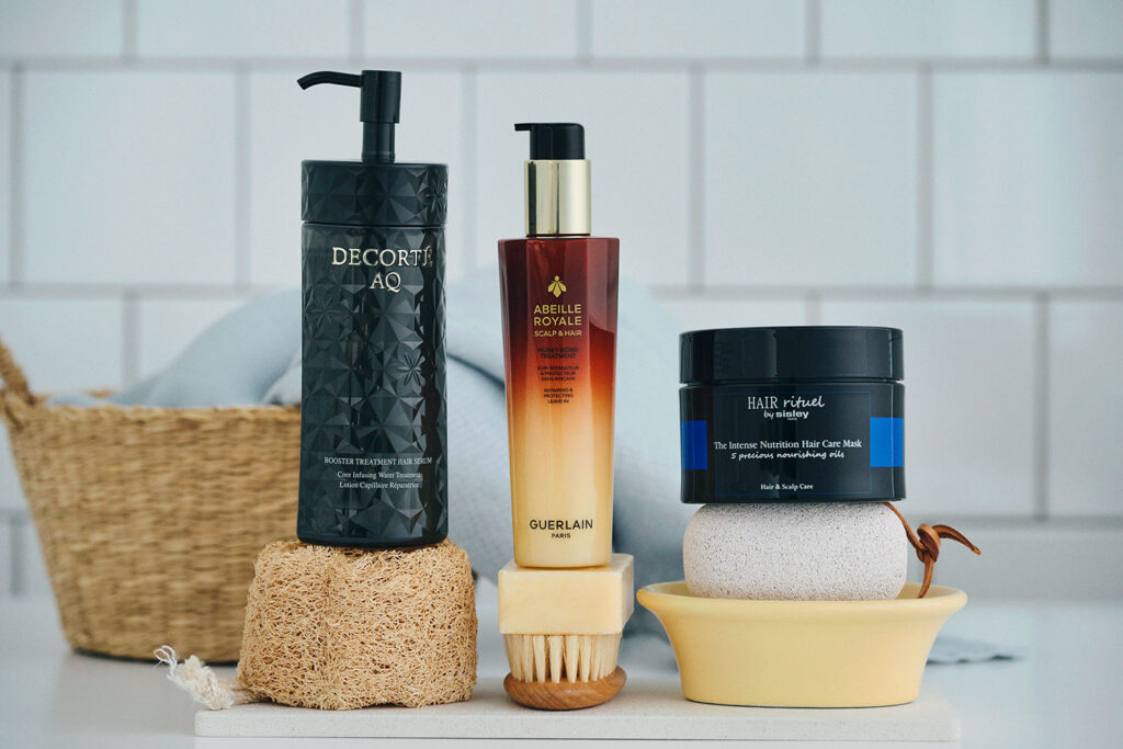 コスメデコルテ、ゲラン、シスレー。スキンケアでも人気のブランドは、ヘアケアだって超優秀!コスメデコルテのAQ ブースティング トリートメント ヘアセラムは、シャンプーの後、トリートメントを塗布する前に使う髪の導入美容液。カラーや毎日のスタイリング、紫外線などで傷んだ髪を補修して、つるんとなめらかに! ゲランのベイユ ロイヤル スカルプ&ヘア Hボンド トリートメントは、スキンケアで培ったハチミツ*1やロイヤルゼリー*2の優れた補修力をヘアケアに応用したアウトバストリートメント。リペア&プロテクトに注力した処方で、ハイダメージな髪もしっとり、つややかに。スカルプケアからダメージケアまで優れたヘアケア製品が揃うシスレーのヘアリチュアルシリーズ。髪をパサつかせる要因、脂質不足に注目した処方で、繰り返すカラーリングやアイロンなどの熱ダメージで傷んだ髪の集中補修を叶えます。